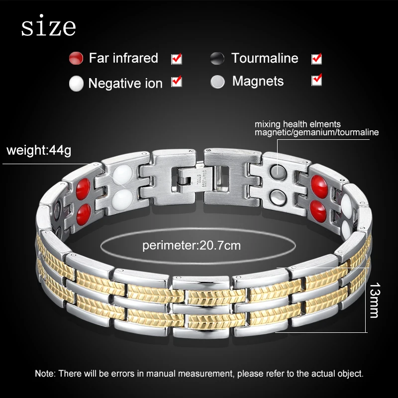 Related Product for New heavy metal men's stainless steel gold bracelet four elements balance energy care magnetic ener