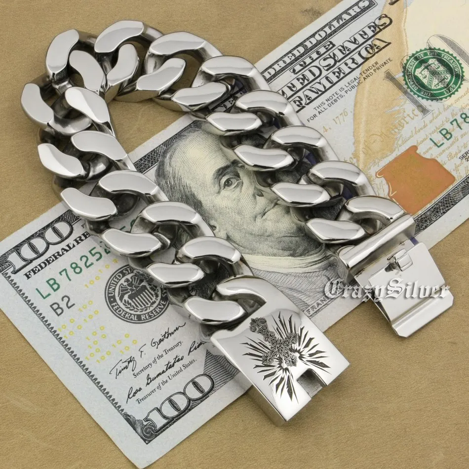 Deals LINSION Huge Heavy 316L Stainless Steel Deep Laser Engraved Pirate Skull Bracelet Mens Biker Punk Curb Link Chain 5F104Earn 17% Cash Back, VALID UNTIL TOMORROW